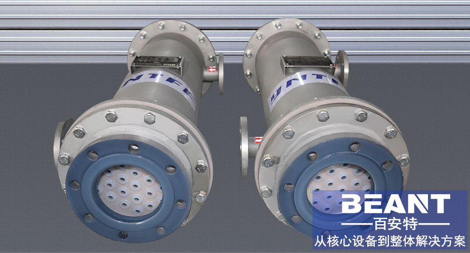 氟塑料管殼式換熱器壽命長達8~10年,成本回收只需1~2年,設備壽命長、綜合成本低,具有較長時間的創益期。