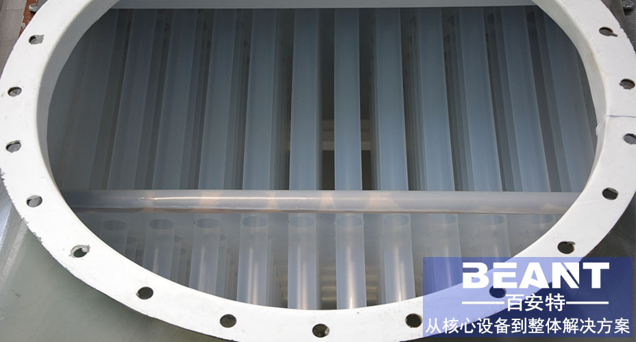 氟塑料管束材料自身具有自清潔特性,防沾黏,易清洗,不易結(jié)垢,因此維修簡單,省事省錢;采用毛細(xì)管換熱,表壁薄、口徑小、抗壓高、耐溫柔軟性好。