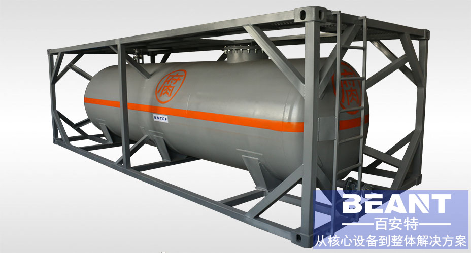 罐體四周有起保護和吊裝作用的角部承力框架。罐箱的外部框架尺寸完全等同于國際標準20集裝箱的尺寸(長20英尺,寬:8英尺,高:8英尺6英寸)。可用于公路,鐵路及水上運輸。可裝載高達到14300到31000升(甚至更大)的流體貨物。